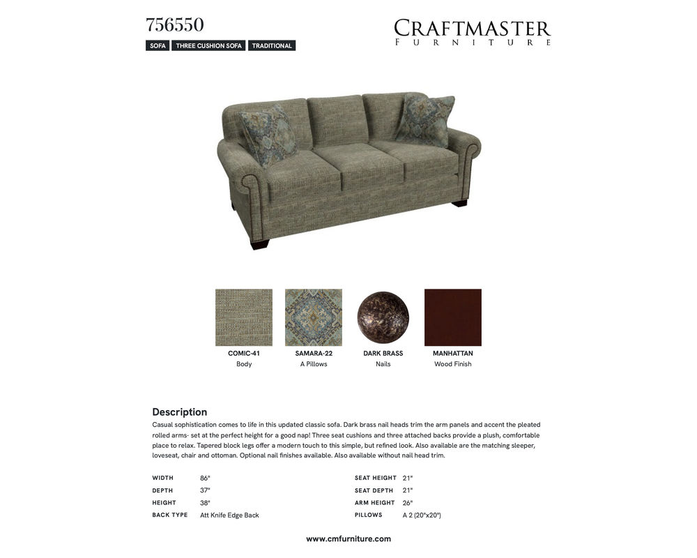 NOTE: Due to dye lot variations from fabric suppliers, Craftmaster Furniture cannot guarantee dye lot matches unless products are purchased simultaneously.