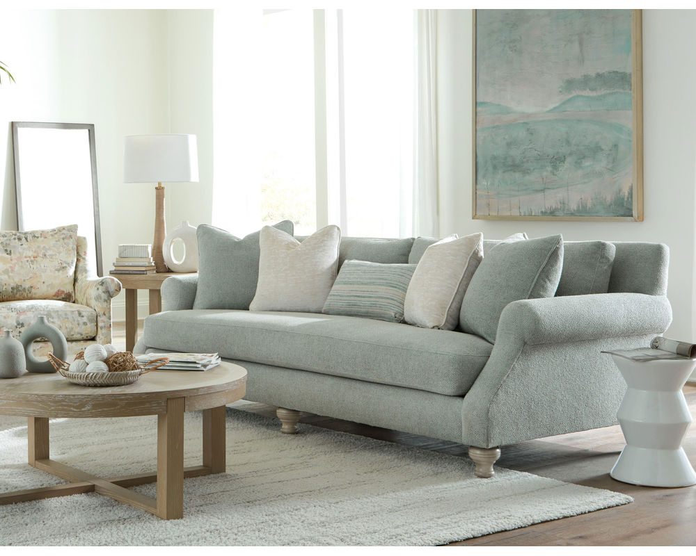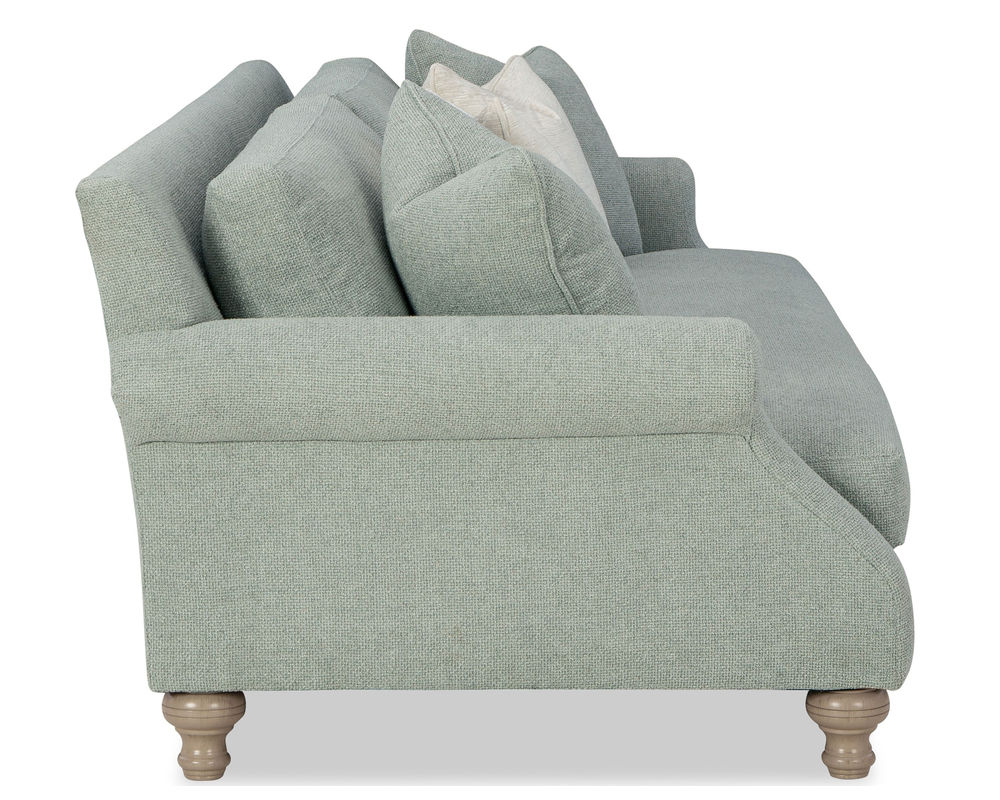 The Wynn P7437 Sofa from the Paula Deen collection is the epitome of indulgent luxury. This 99" sofa, with its deep seating, scattered Blend Down toss pillows, and a bench-seat Blend Down cushion, offers a cocoon of comfort. The French seaming detail adds a touch of elegance, while the turned legs and cut-back roll arms complete the look, making you feel like royalty in your own home.