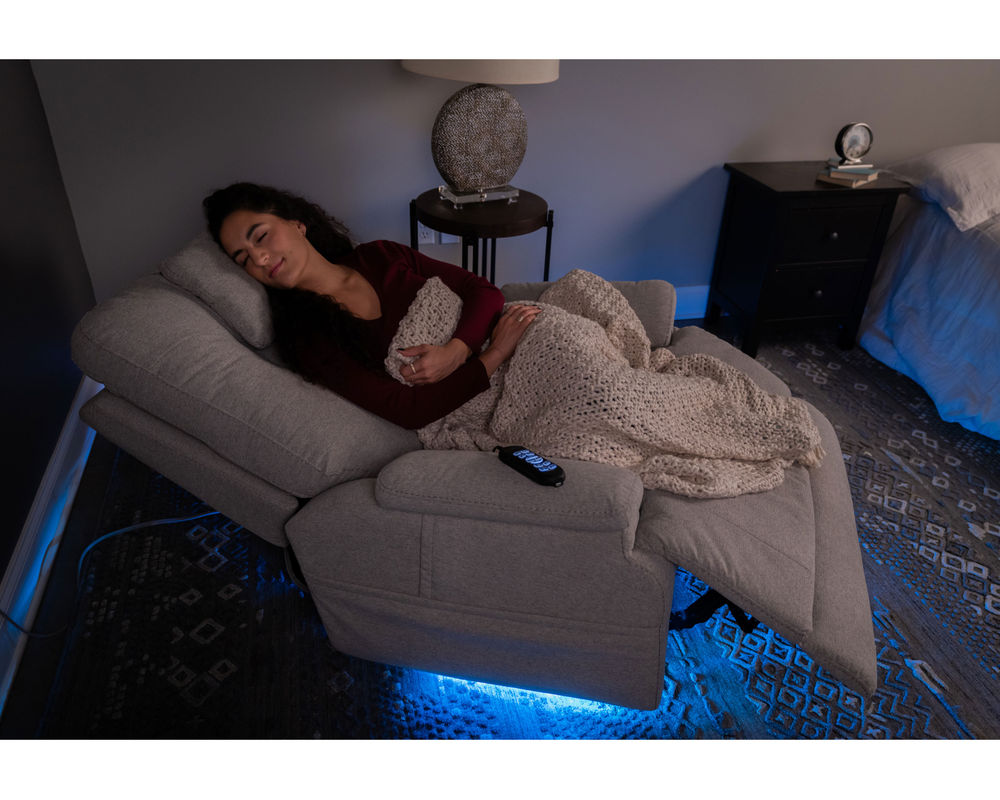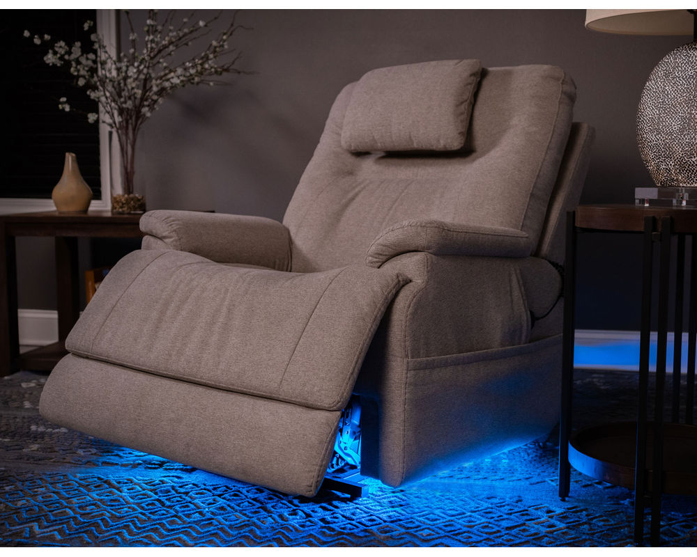 • Motion-activated LED base lighting turns on when you approach or get out of the recliner, and can be adjusted in brightness and color in the MyRecline app