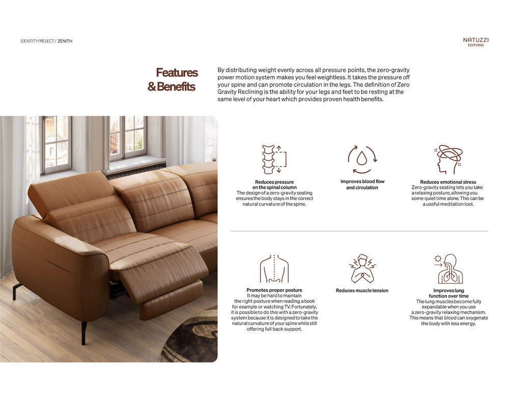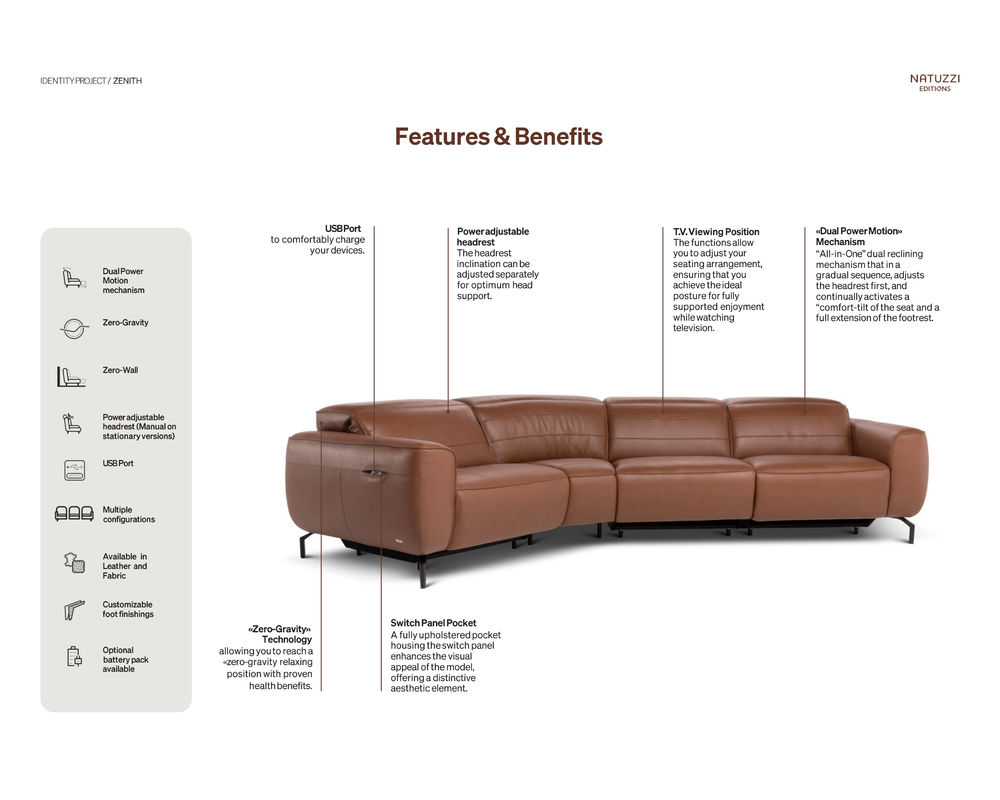 Built upon Natuzzi’s heritage of innovation, Zenith delivers a seamless balance of beauty, comfort, and technology — transforming everyday living into an experience of elevated ease.