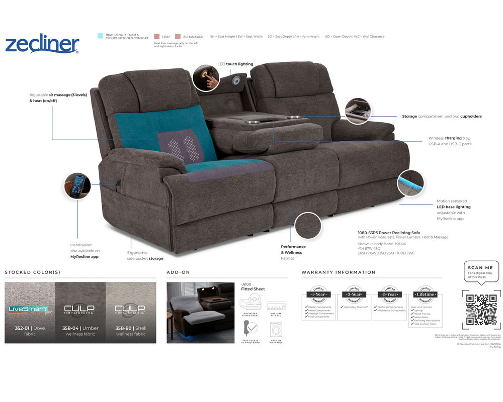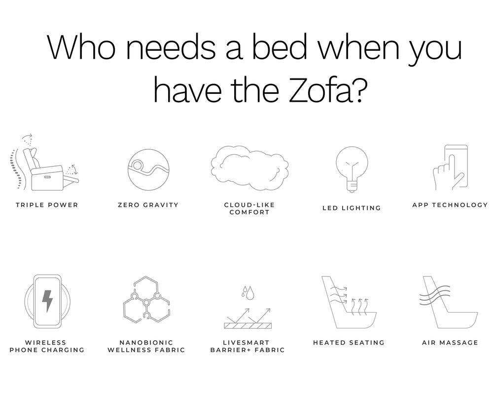 • User-friendly MyRecline app technology allows you full control of your Zofa’s functions easily from your phone