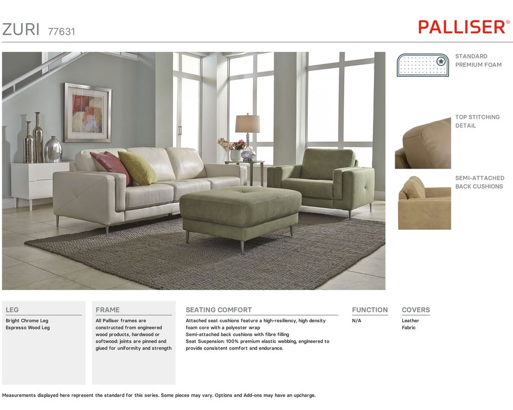 • All Palliser cushions are crafted to rigorous quality standards for superior comfort, support and endurance. High-density, high-resiliency seat foam is used to ensure years of quality seating.